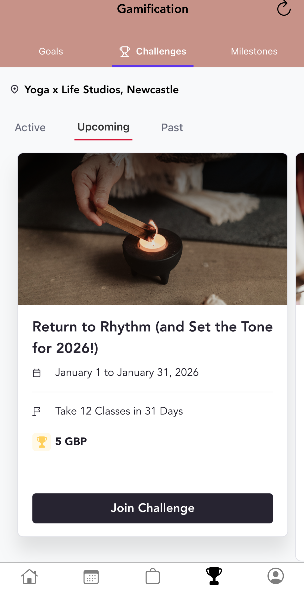 Download our booking app and toggle to the challenges tab to set your goals, and join in with our studio challenges. Complete the challenge and win studio credit that can be redeemed against food and drink in our cafe or against future bookings and reservations.